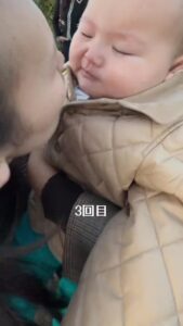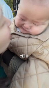 普段からほっぺにチューをしている中で、この日は特に面白いリアクションが撮影できました。