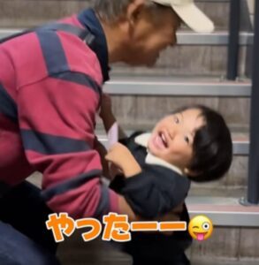今後もおじいちゃんはお孫さんの成長を楽しみにしているでしょう。とても微笑ましいおじいちゃんとのやりとりでした。