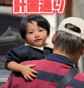 おじいちゃんに抱っこしてもらうと、まるで「計画通り」といっているかのようにニヤっと笑う息子さん。いつもはママさんが抱っこしているため、このときのような表情は初めてみたといいます。