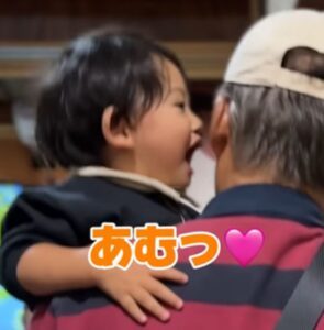 おじいちゃんに抱っこしてもらうと、おじいちゃんに向かって「あむっ」と言う息子さん。赤ちゃんのときから「可愛くて食べちゃいたい!あむ」と家族にされて育ったため、真似をしていたのかもしれません。ママさんは「愛情表現しているのかな」と微笑ましく感じたそう。