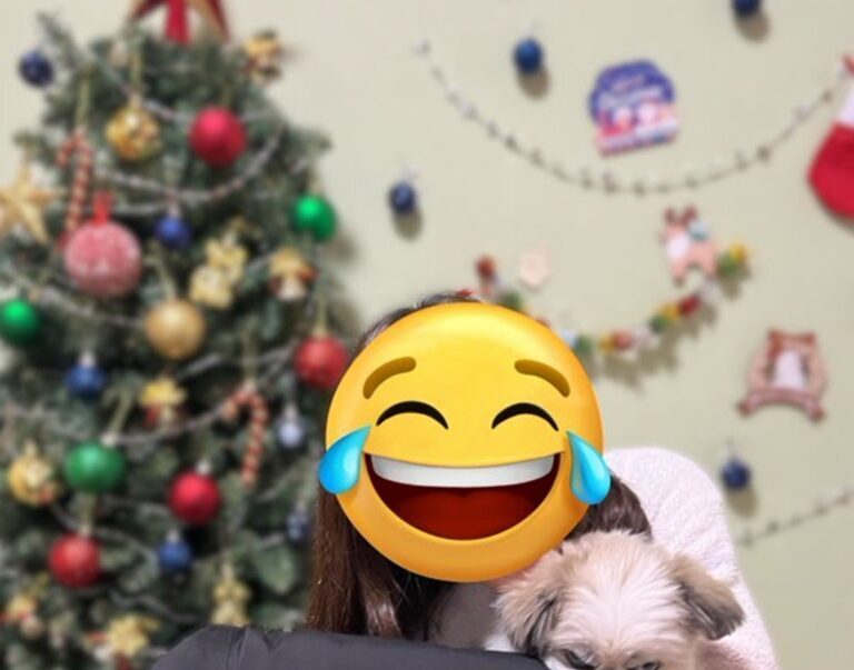 クリスマスツリーの前で、ちゃあこちゃんと一緒に記念撮影したときも「あーまたすごい顔になっているわーー」と思ったという飼い主さん。