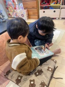 息子さんの一言に「大人は気にも留めずに食べるバームクーヘンの穴を、子どもの視点で見つめるのは面白いなと思いました」とママさん。穴があいているのが不思議だったのでしょう。