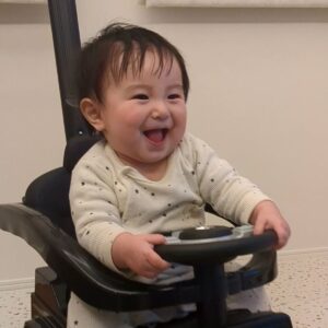 お披露目で泣いていた息子さんも、今では楽しそうに遊んでいます。後ろから手押しできるため、毎日のように家の中を走り回っているのだとか。