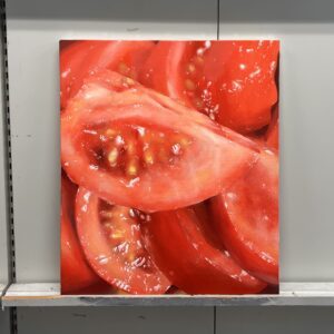 こちらの作品は、完成まで3日ほどかかりました。トマトのみずみずしさとおいしそうな感じを表現できるようにと描いたといいます。