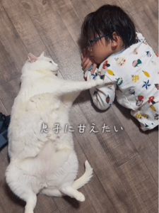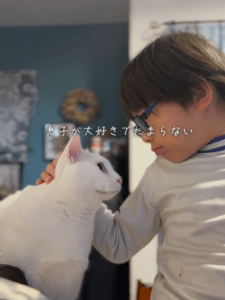 3匹の猫ちゃんと暮らす投稿者さん家族。中でも白猫のブランちゃんは6歳の息子さんと仲良しで、投稿者さんはブランちゃんが息子さんに甘える可愛い姿を動画に記録していました。