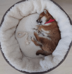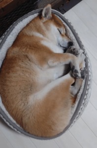 お気に入りのベッドからはみ出してしまう可愛らしい姿がInstagramに投稿されると「デカ柴」「ミチミチ」「うちもはみ出ているw」「愛しい」「ぎゅうぎゅうに詰まった感じ」などのコメントが寄せられ話題となっています。