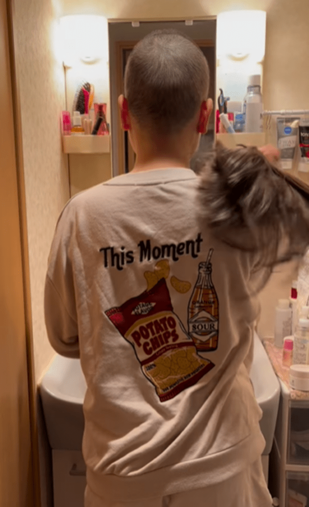 ウイッグを取るみょぬさん(@myonu.cancerさんより提供)