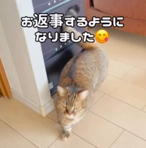 ”あられ”と名前を呼ぶと、近くにやってきて「ニャ~」とお返事をするあられちゃん。以前はたまにでしたが、今では頻繁にお返事をするそうです。
