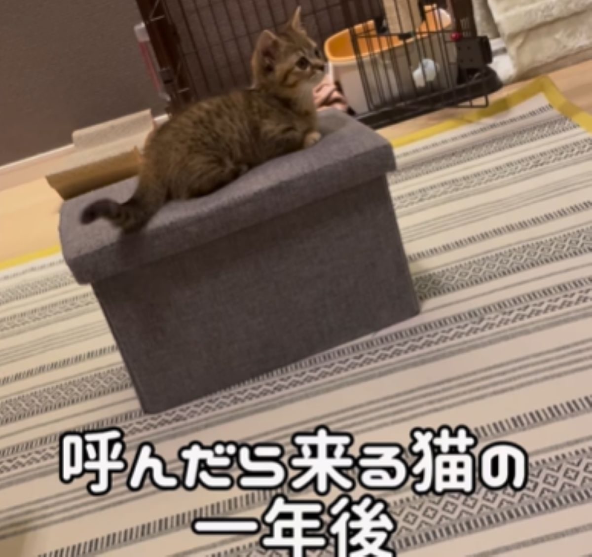 生後4~6ヶ月の頃、あられちゃんは名前を呼ぶと近くまで来ていました。”あられ”という名前に反応し「ニャ~」と鳴きながら寄ってきます。