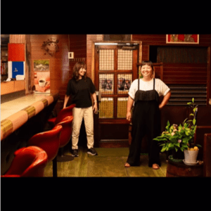 レトロな雰囲気が漂う店内で、幼い日と同じポーズでパチリ。背景に映る扉の半分にも届かなかった2人の背丈は、ずいぶんと伸びました。