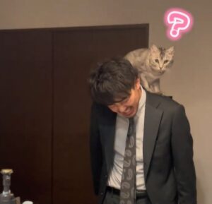 さらに、食事中は旦那さんの目の前に居座り、食器洗いの最中もアピールを欠かさないとか。朝は旦那さんが出かけると鳴き、帰宅後は甘えん坊モード。家ではまるで公認の彼女のように仲良しですが、もう1匹の先住猫・こむぎちゃんは旦那さんに塩対応。いいバランスで笑わせてもらっているそうです。