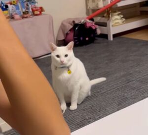 息子さんの後ろにいたのは、白猫の幸吉くんです。