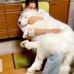 • ストレッチ中…おしり付近に違和感を覚えた女性。見てみると、尊すぎる元凶が発覚し「お手伝い…?w」「ゆりかご笑」