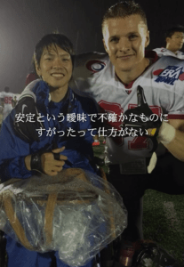いろいろな人に話を聞いた中で、一つ中村さんにできることがありました。それは戦術を考えることです。アメフトは頭脳戦で、一つの試合をするためには100個くらいのプレーを事前に作っておくといいます。事前準備が大切なアメフトは、良い戦術を考えられれば仮に身体的に劣っていても、相手に勝てるスポーツなのです。