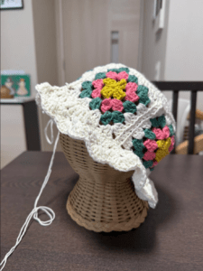 特に糸処理が大変だったそう。練習で何度もほどけてしまっていたので、帽子でも糸がほどけて作品を最初からやり直さなくて済むよう注意しながら作成しました。