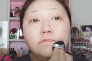 まずはシミやソバカスをカバーしつつ、ツヤ感を出すクリームを仕込んで透明感を演出。アイシャドウやリップなど、全体的に表情が明るく見える色味をセレクトしました。