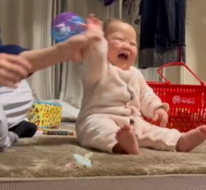 当時生後10ヶ月の息子さんは、パパさんとボール遊びをしていました。とても楽しそうな息子さんの姿を両親に送りたいと思ったママさんは、動画を撮影することに。