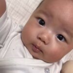 • よだれ掛けをじっくり見つめる5ヶ月娘。次の瞬間…思わず写真に収めた“まさかの行動”に「可愛すぎる」「尊い」「わかるんだね」