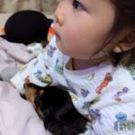 こうちゃんを抱っこする娘さん(@kou111dachsさんより提供)