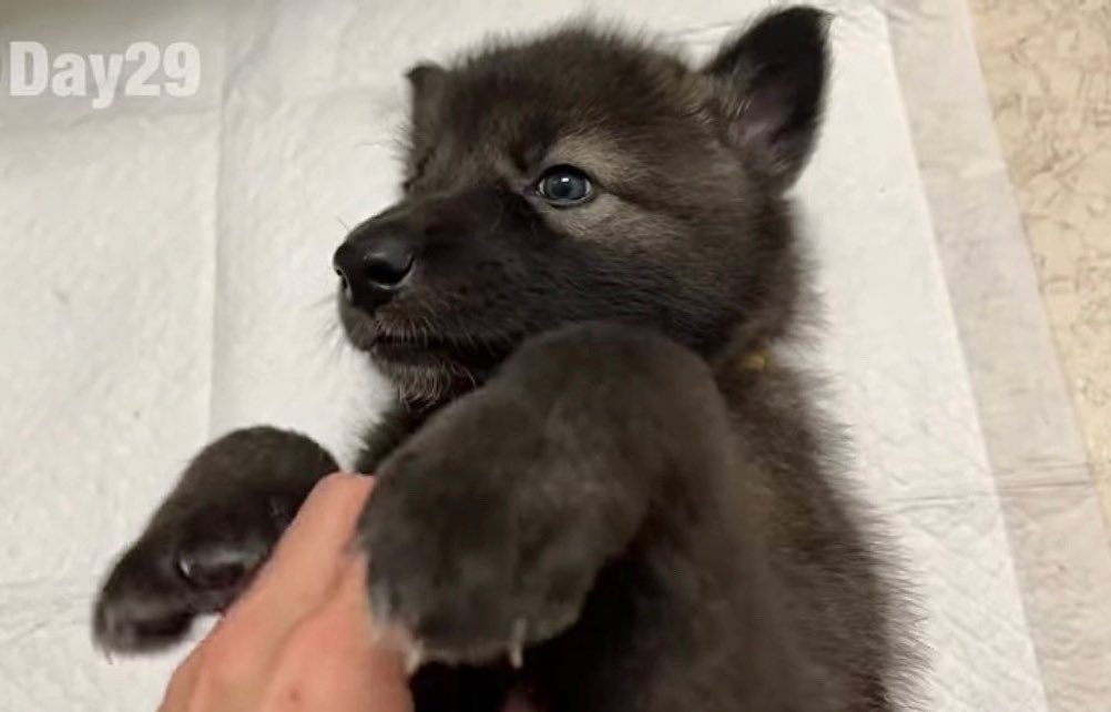 真っ黒な赤ちゃんわんこ → しかし、1年半後…豹変した姿に「イケメン」「毎日添い寝してもらいたい」「眼つきが違う」「精悍なお顔」