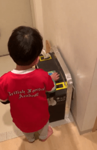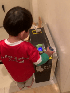 それは、以前息子さんが遊んでいたリアルなICカードのおもちゃを使って、子ども用の改札機ごと作って玄関に置けば楽しみながら登園してくれるのではないか?ということです。