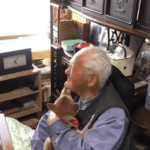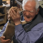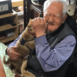 ひいおじいちゃんの顔を舐め回す赤ちゃん柴犬が初対面(@adi_das.shibaさんより提供)