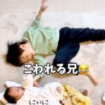 • 兄弟のように育ってきた9ヶ月息子とハスキー犬。しかし…ばあばに怒られた直後、2人のまさかの行動に「そっくりだな」「コントか」