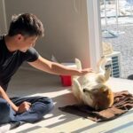 飼い主が廊下で寝てみたら…→大型犬たちによって廊下が天国に!?「羨ましい」「幸せそう」の声