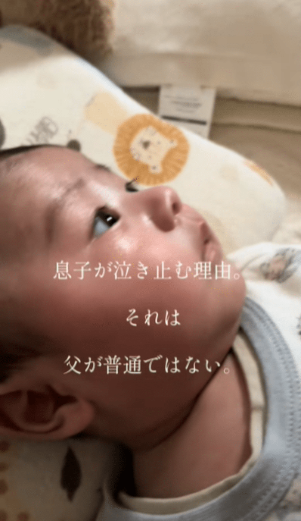 ある日、布団に寝かされた生後3ヶ月の息子さんをあやすため、パパさんがその場で跳ねながら腰を左右に捻り、手足を大きく打ち振るう全力ダンスを披露します。投稿された動画には「父が普通ではない」とありました。
