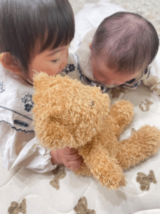動画は寝る前の一コマ。当時、お姉ちゃんは1歳10ヶ月、妹ちゃんは生後5ヶ月でした。