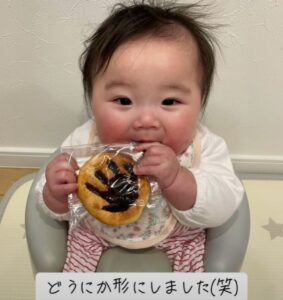 SNSで手形クッキーを見かけ「かわいいな」と思い、作ることに。赤ちゃんはできることが限られているため、月齢が低くても楽しめるものを選んだそうです。