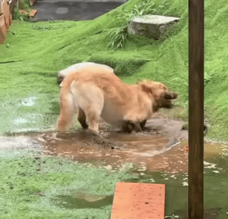 泥で思いっきり遊ぶワンコ しかし、飼い主にバレたと悟った瞬間……「アザラシだ」「気まずそう」「やばい」