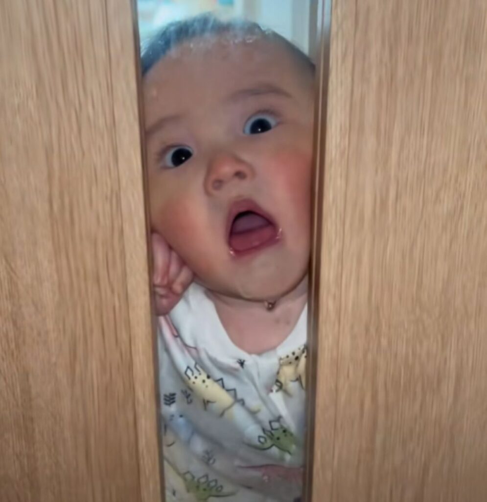 ドアに張り付く息子さん(@yuto.m3366さんより提供)