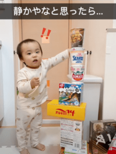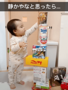 何でも積み上げるのが大好きな1歳児。ママ(@yururi_iro)さんが、息子さんの力作をTikTokに投稿すると「天才じゃん!」「バランス感覚すごすぎ」「一番上が一番小さいカップ麺っていうのがいいね」などのコメントが寄せられ、話題になっています。