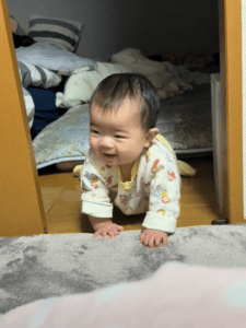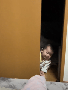 夜に目を覚ましたときの娘さんの様子は、泣きながら起きてくるパターンや、ペチペチと音を立てながらハイハイして部屋の入口にたどり着き、扉をトントンと叩いてアピールすることもあるそうです。