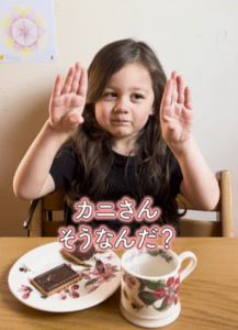 動画の中で次女さんは、日本とイギリスの手招きの仕方や指の数え方の違いに気づいて話していました。また、カニのジェスチャーの違いについても説明しています。