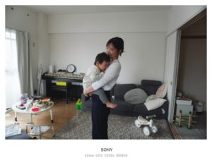 育休最後の日であった撮影の日、ママさんはできるだけ普段の姿を撮ってもらいたいと思い、家事をするなどいつも家で過ごしているように自然に過ごしたといいます。