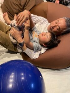 そして、実家に行けばじいじの膝の上を定位置にし、毎日いろいろな話をしているとのこと。