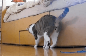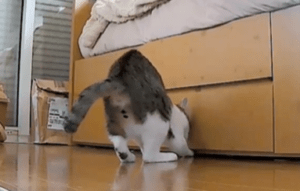 ベッドの下へ消えていったおやつを慌てて追う琥珀くんでしたが、隙間の奥に行ってしまったおやつが戻ってくることはありませんでした。