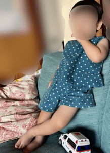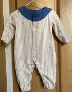 「型紙を当ててみると布が足りない部分もあり、試行錯誤しながら型紙をアレンジしたり、縫い代を赤ちゃんの肌に当たらないよう処理したり…。上の子2人を一人で見ながらだったので時間もかかってしまいました」と語ります。