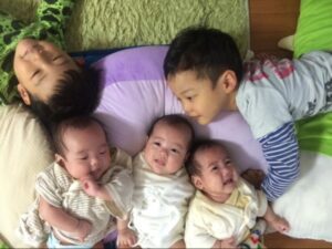 5人の子どもを育てる中で、大変だったのは、すべての行動にとにかく時間がかかったこと。双子の送迎も買い物も、常に三つ子を連れての移動は本当に大変だったと話します。
