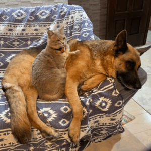 他にも大型犬を飼っていますが、マイキーくんは家に来た当初から、人や犬に甘えて添い寝をしに行っていました。