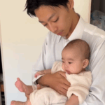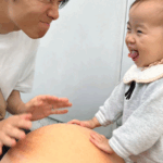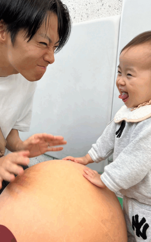「にらめっこ」するパパさんと娘さん(@_jurixmitsu_さんより提供)