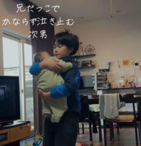 また、ママさんがお風呂中のとき、お兄ちゃんは弟くんをあやしてくれることも。