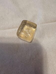 硬めのぷにぷにした手触りに、少しヌルヌルした感触。湿ってはいたものの、砂糖のベタベタ感はなく…どうやらこちらは寒天ゼリーのお菓子のよう。小学5年生の娘さんに確認すると、お友達の家でもらったものをポケットに入れたまま忘れていたとのこと。