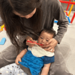 • よだれ掛けをじっくり見つめる5ヶ月娘。次の瞬間…思わず写真に収めた“まさかの行動”に「可愛すぎる」「尊い」「わかるんだね」