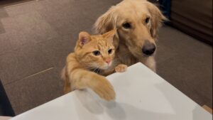 映画を夢中で見る猫ちゃんとワンちゃんも珍しいですね。もしかすると、2匹で映画の感想を話し合っていたのかもしれません。
