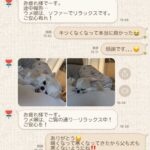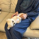 カメラの方を向いて欲しいお父さんと目が爛々としているうめちゃん(@chihuahua_umeさんより提供)