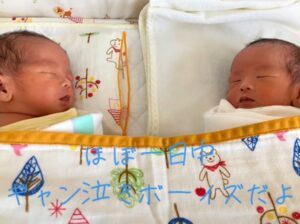 出産は予定帝王切開で、意識がハッキリある状態でした。お腹を切られるのは怖かったそうですが、1人目が生まれたと思ったらすぐ2人目も生まれ、2人とも元気に泣き声をあげていました。