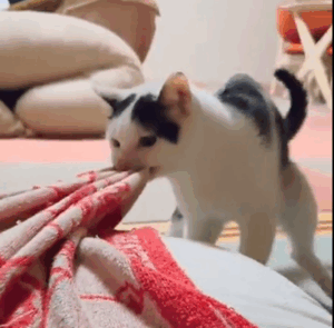 すると、こもちちゃんは突然、飼い主さんの使っていた枕カバーを引っ張り始めました。飼い主さんは内心「持っていかないで〜」と思いつつ、自分の体よりも大きな枕を一生懸命に運ぶ姿が微笑ましかったそうです。